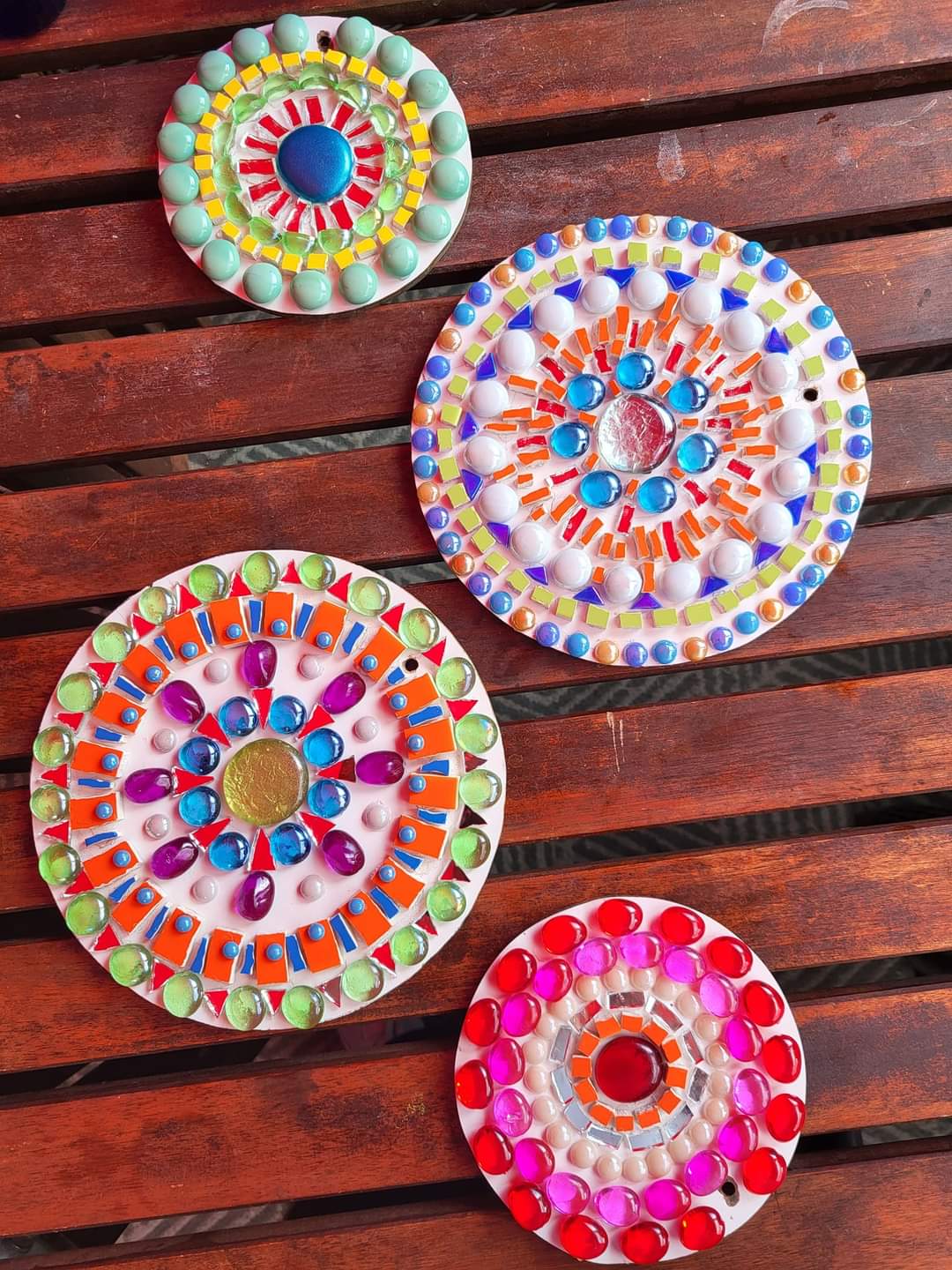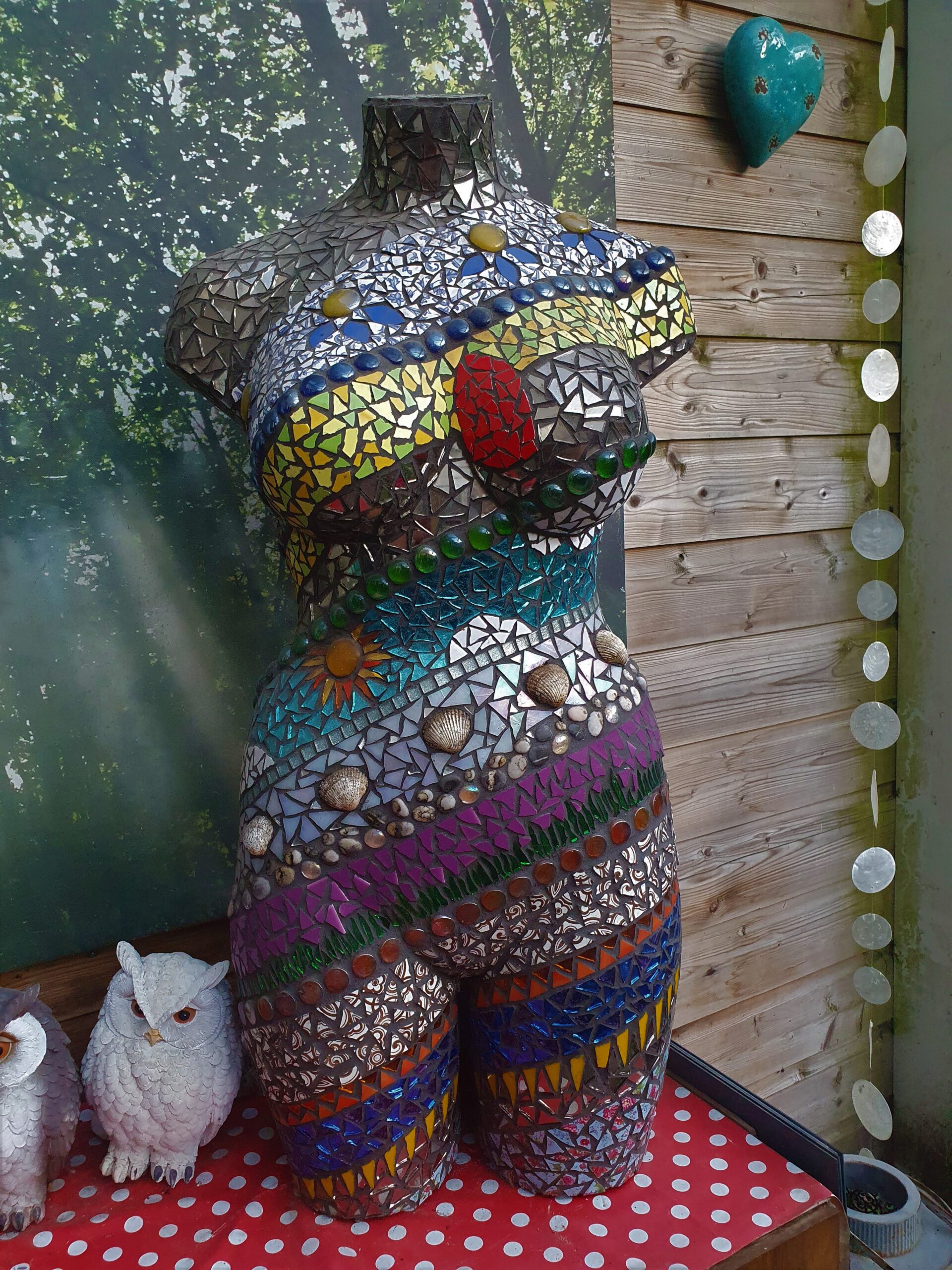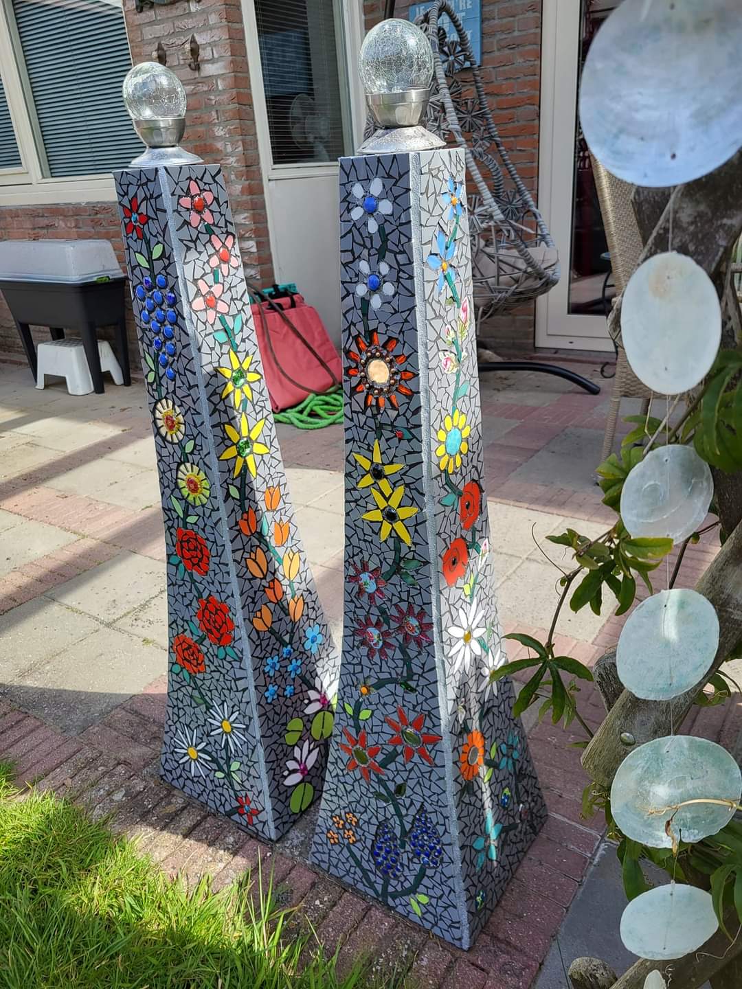Mozaïeken (Klik op de foto voor het originele formaat) Bol lamp 1 Bol lamp 2 Bol lamp 3 Torso Levensloop Naambordje 1 Naambordje 2 Plafondlamp aan Plafondlamp uit Tafelblad 1 Tafelblad 2 Muurmozaiek Zeemeermin Zeemeermin Tuinsteker 1 Tuinsteker 2 Lampje glasmozaïek Spinner Mozaïek rondjes Lamp